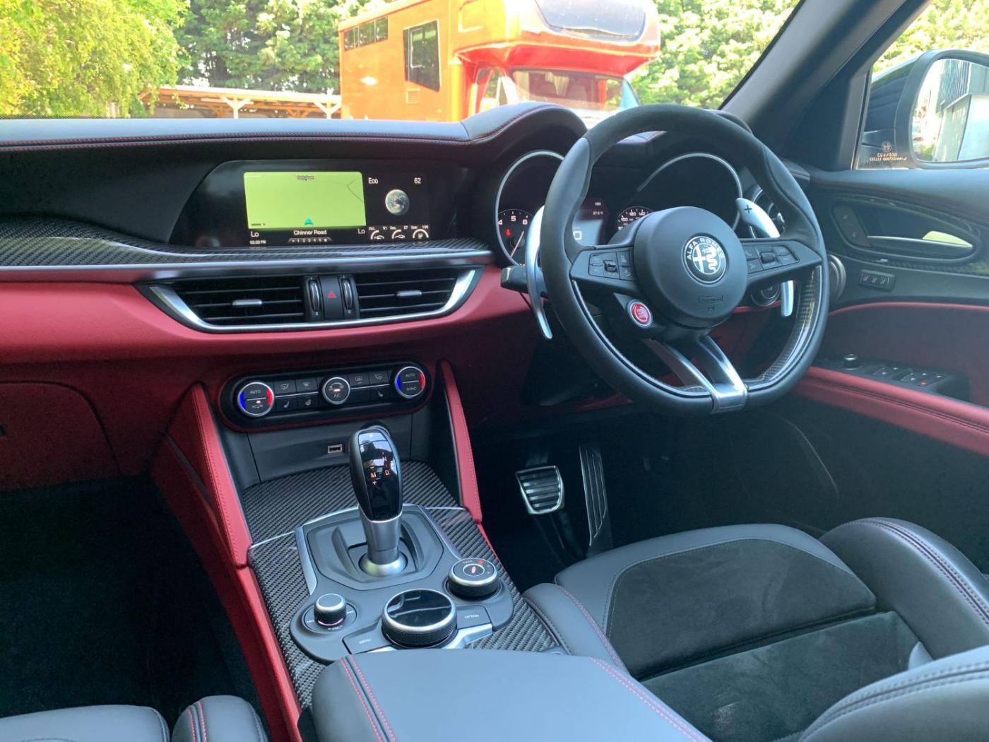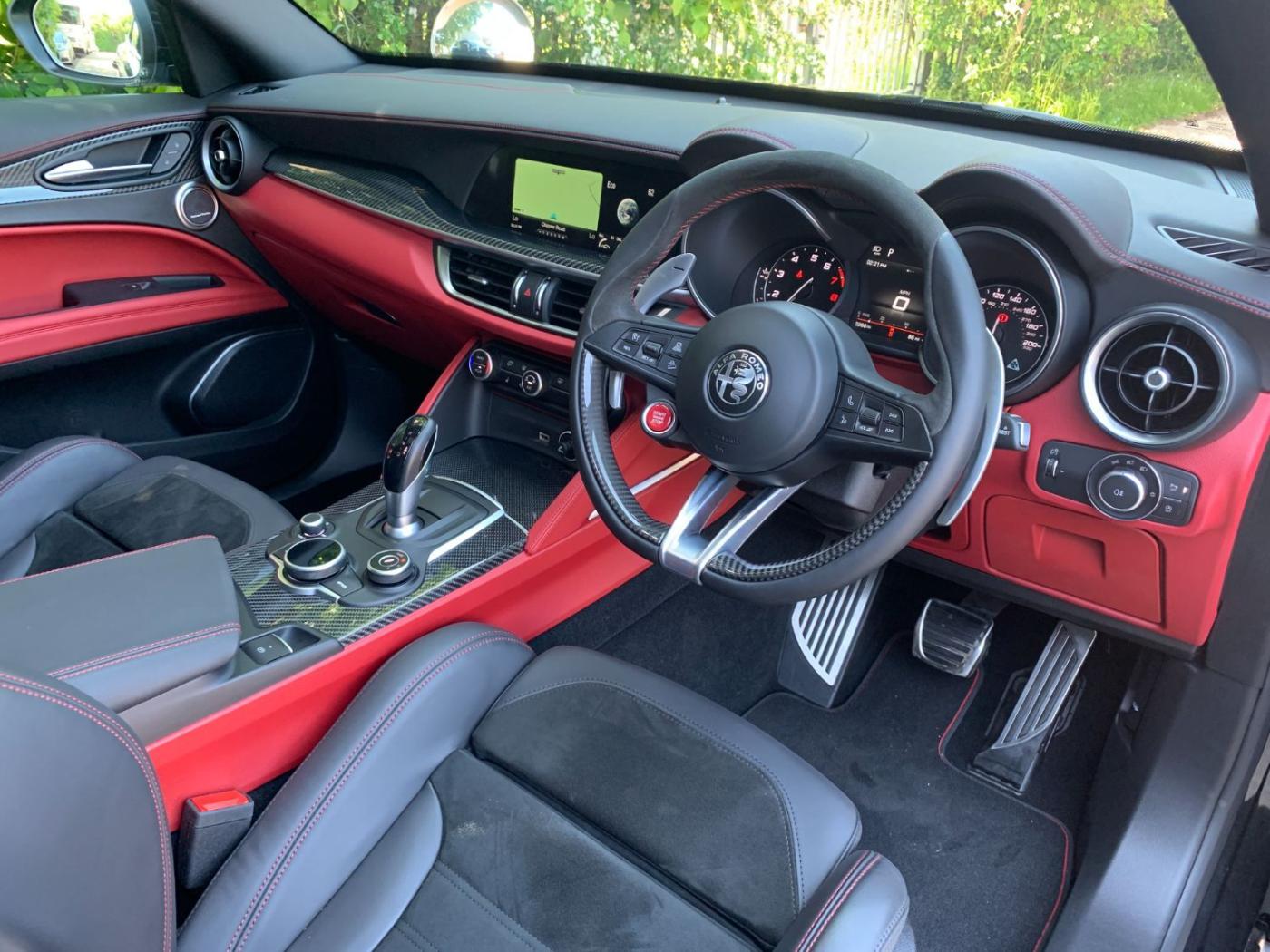 Sat Nav, DAB Radio, Apple CarPlay/Andriod Auto, Alfa Connected Services, Bluetooth, Reverse Camera, Sound Theatre By Harman Kardon, Panoramic Sunroof, Black Gloss Roof Bars, Auto Xenon Headlights, Daytime Running Lights, Leather/Suede Interior, Black/Red Interior - Stitching With Bi-Tone Door Panels And Lower Dash Board, Heated Front And Rear Seats, Electric Adjustable Memory Front Seats, Quadrifoglio Leather/Alcantara Flat Bottomed Sports Steering Wheel With Carbon Insert, Multifunctional Steering Wheel, ACC - Adaptive Cruise Control With Stop And Go Function, Carbon Fibre Interior Trim, Ambient Lighting, Auto Dimming Rear View Mirror, Electric Adjustable Folding Door Mirrors, Front And Rear Parking Sensors, 230V/50HZ Auxiliary Power Outlet In Boot, Cargo Net In Boot, Cargo Adjustable Load Area Rail System, Hands Free Tailgate, Privacy Glass, Red Brake Callipers, 20” Alloy Wheels,