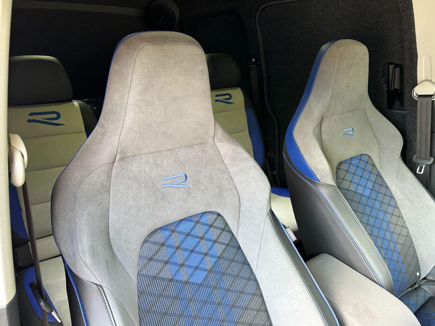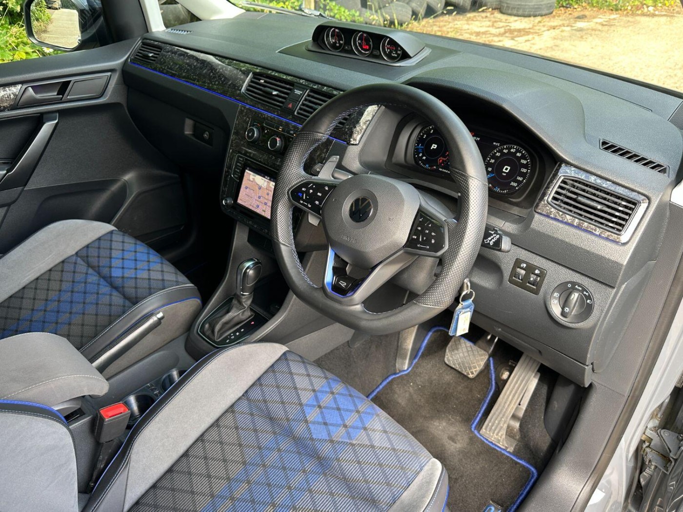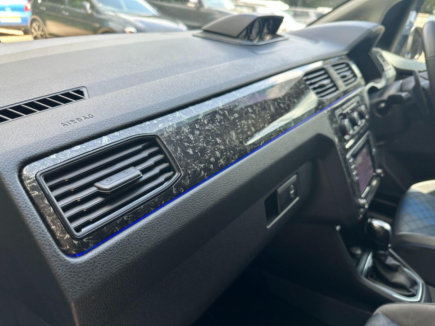No VAT, Sat Nav, DAB Radio, Bluetooth, Aftermarket Speakers, Reverse Camera, TMG Digital Dash, Scirocco Centre Gauges, Can-Phantom Immobiliser, Full TRC Splitter Kit Wrapped In Forged Carbon, Front Grille Wrapped In Forged Carbon, All Track Wheel Arch Kit, Engine Cover, Bonnet Guard, Tinted Headlights, Sweeping Side Indicators, Team Heko Wind Deflectors, Black Windscreen Sun Strip, Tinted Front Windows, Black Roof Rails, Colour Coded Bumpers / Spoiler / Door Handles / Door Mirrors, Wheel Spacers, Aftermarket Lowering Springs, Blue Brake Calipers, Upgraded Brake Kit Front - 18Z 6 Pot Big Brake Kit With 350mm Discs / Rear - 310mm Vented Discs, 19” Revo Alloy Wheels, MK8 Golf R Front Seats, Touran Rear Seat Conversion (5 Seater) With Re-trimmed ‘R’ Upholstery, Custom R Floor Matts And Boot Matt, Carpet Lined, Sound Proofing In Rear, Blue Tartan Roof Lining In Rear, LED Spot Lights In Rear, Front Quilted Roof Lining, Touran Centre Console With Armrest, Caddy Life Dash Trims With Ambient Lighting, Interior Trims Wrapped In Forged Carbon, Solid Tailgate, Auto Bi-Xenon Headlights, Front Grille Lazer Lights, MK8 Golf R Multifunctional Steering Wheel With Paddle Shifters, Audi Indicator And Wiper Stalks, Adaptive Cruise Control - ACC, Rear Parking Sensors, Auto Wipers, Air Conditioning, Heated Windscreen, Electric Front Windows, Electric Adjustable Door Mirrors,